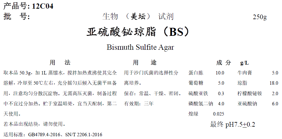 在GB4789.28-2013 培養基和試劑的質(zhì)量要求中關(guān)于亞硫酸鉍瓊脂(BS)的質(zhì)量控制標準為: